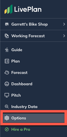 You can change your company name in three places in LivePlan: the Options section, the Pitch, and the cover page you add to your plan.