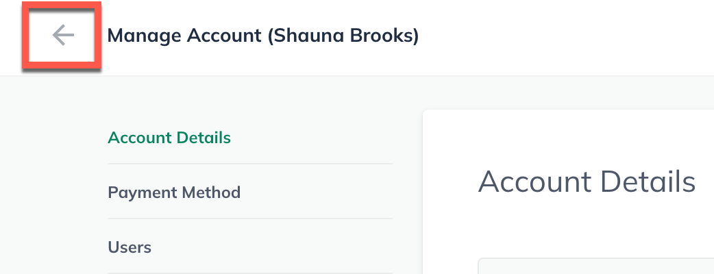 - To exit the Manage Account page, click on the back arrow in the upper-left corner of your LivePlan window: